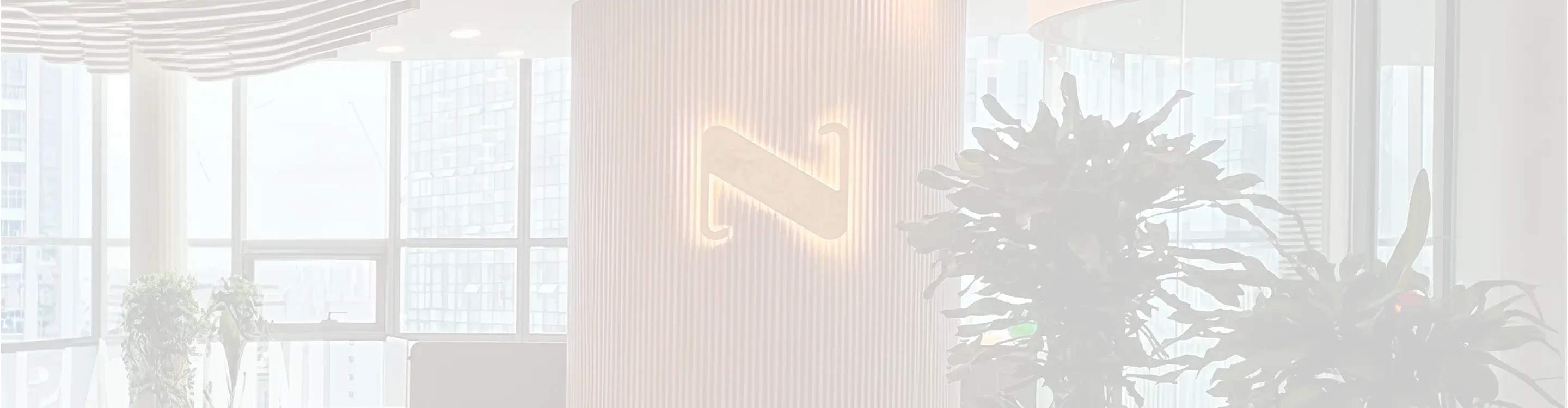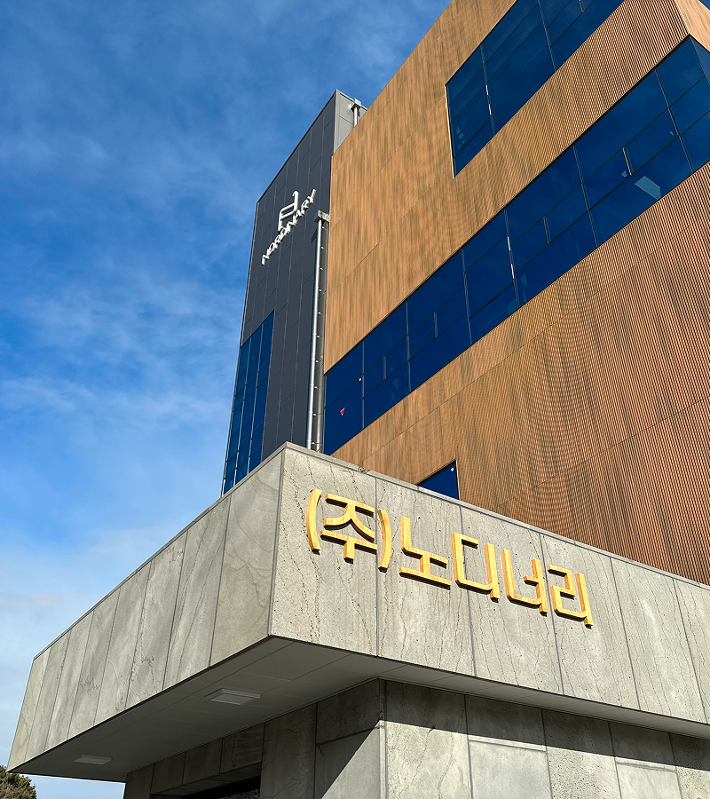 좌우 직선형태를 연결하는 대각선에 공간감을 주어 만남의 창이자 접점으로서 아이디어와 기술력의 만남 '노디너리와 고객과의 만남'을 의미